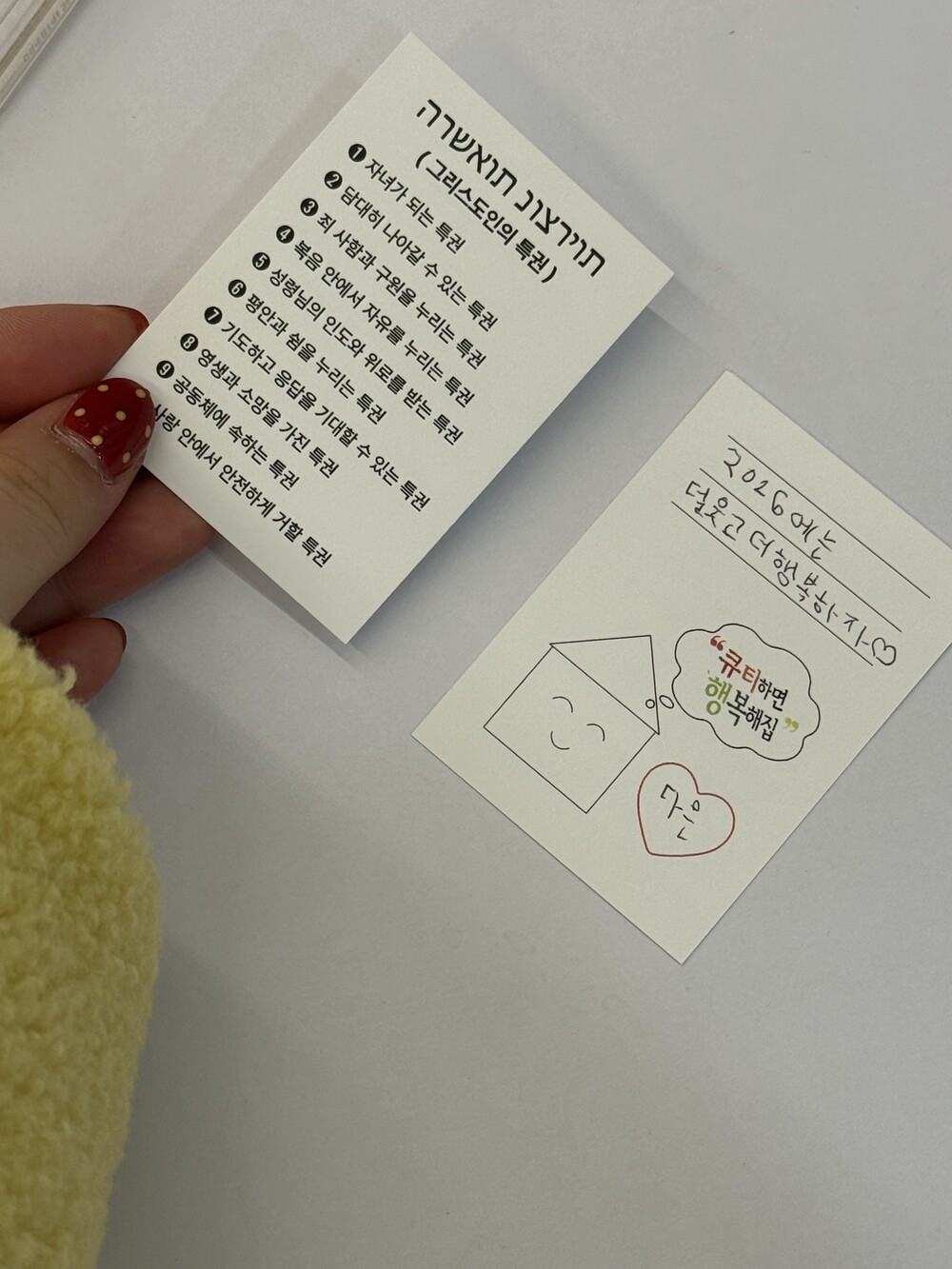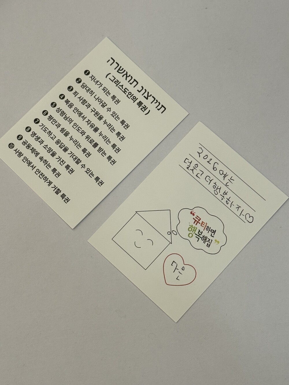 앞면에는 특권이, 뒷면에는 짧은 편지를 써서 전달 할 수 있어요.